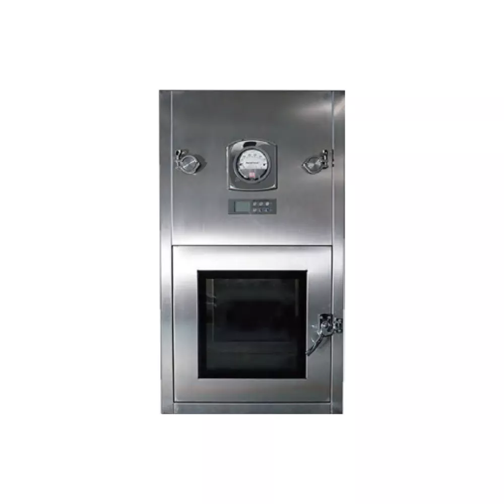 | Feature | Convex door mechanical interlocking pass box | Flat door mechanical interlocking pass box | Flat door electronic interlock pass box | Laminar flow pass box | Air shower pass box |